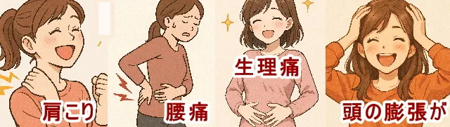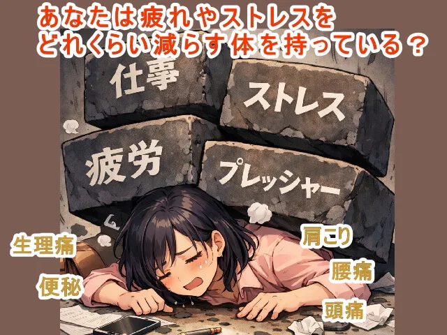 肩こり、腰痛、頭痛、生理痛、便秘、膝の痛み、首のコリなどが起きる時は、普段の生活で蓄積している疲れやストレスが原因です。